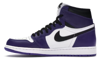 Esclusiva ed elegante, le nuove Jordan 1 Retro High Court Purple White di Jordan sono un'interpretazione raffinata delle iconiche Chicago 1. La tomaia in pelle bianca è arricchita da dettagli in tono Court Purple e nero, mentre l'intersuola bianca e la suola esterna in Court Purple completano il look.